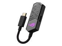 ROG Clavis: DAC gaming USB-C a 3,5 mm con cancelación de ruido con IA, tecnología de renderizado MQA, QUAD DAC ESS 9281, amplificador de audio y Aura Sync. ROG Clavis es compatible con PC, dispositivos móviles y portátiles.